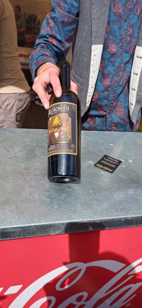 También hemos tenido la oportunidad de degustar los vinos «Alcachofo» y «Alcachofina», uno tinto Monastrell (70%) y Petit Verdot (30%), y el blanco, de uvas Macabeo y Airén. Estos vinos orgánicos son un homenaje a los abuelos del propietario, Jonathan Hurtado Carpentier, y representan un profundo amor a la agricultura y respeto a la tierra.