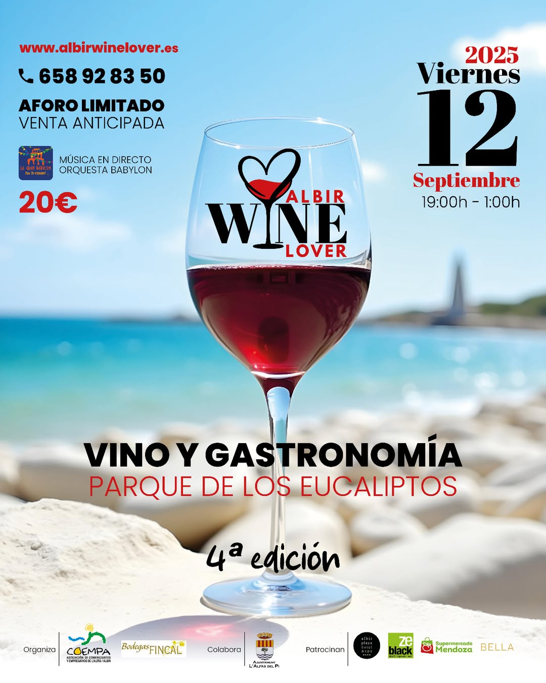 El próximo viernes 12 de septiembre, el Parque de los Eucaliptos, en pleno corazón de L’Albir –L’Alfàs del Pi-, se vestirá de múltiples aromas, sabores y buena música para celebrar la 4ª edición de Albir Wine Lovers, un evento que ya se ha ganado un hueco imprescindible en el calendario enoturístico de la provincia de Alicante.