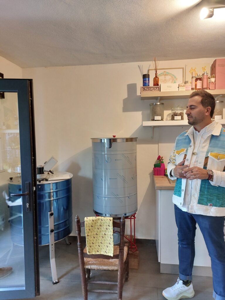 Eduardo es muy activo y no para de hacer realidad todo lo que su incansable imaginación le propone. Entre otras cosas, comercializa una variedad de artículos en los que la miel está muy presente, como jabones, esencias y velas aromáticas que tienen gran aceptación tanto en hoteles como en comercios especializados de toda la geografía española.