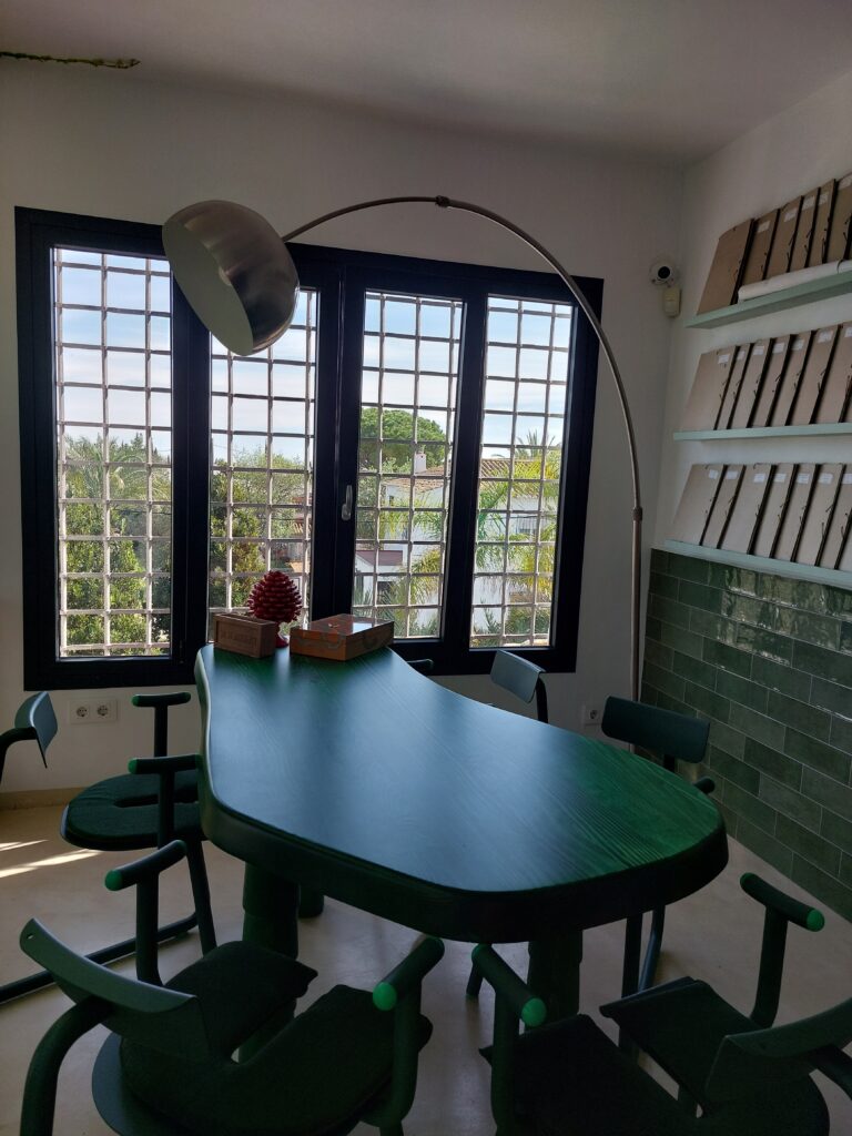 Un estupendo jardín vertical, nos lleva a la planta superior del edificio, donde nos mostraron con orgullo la zona de oficinas, donde un diseño cosmopolita y vanguardista, diría que incluso con un encantador toque snob, hace que el día a día de estos dos profesionales sea un auténtico lujo.