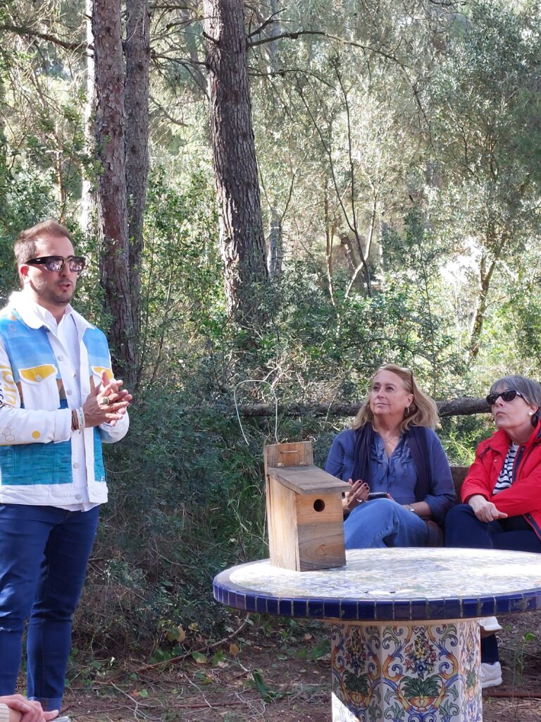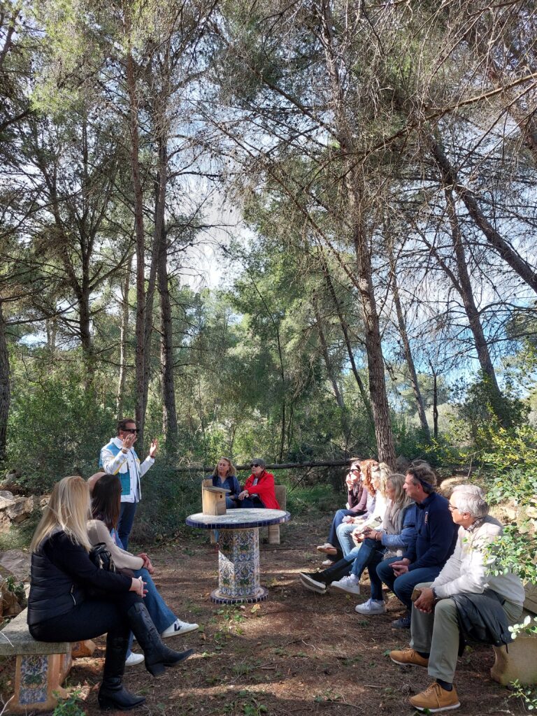 A continuación nos trasladamos a la zona donde se realizan las experiencias de Apiturismo, donde Eduardo nos dió una verdadera clase magistral sobre el tema. Estas experiencias que realiza en pleno Parque Natural del Montgó son un verdadero viaje a través de los sentidos. Desde lo alto de la atalaya que han levantado frente a las colmenas, se puede observar toda la finca .