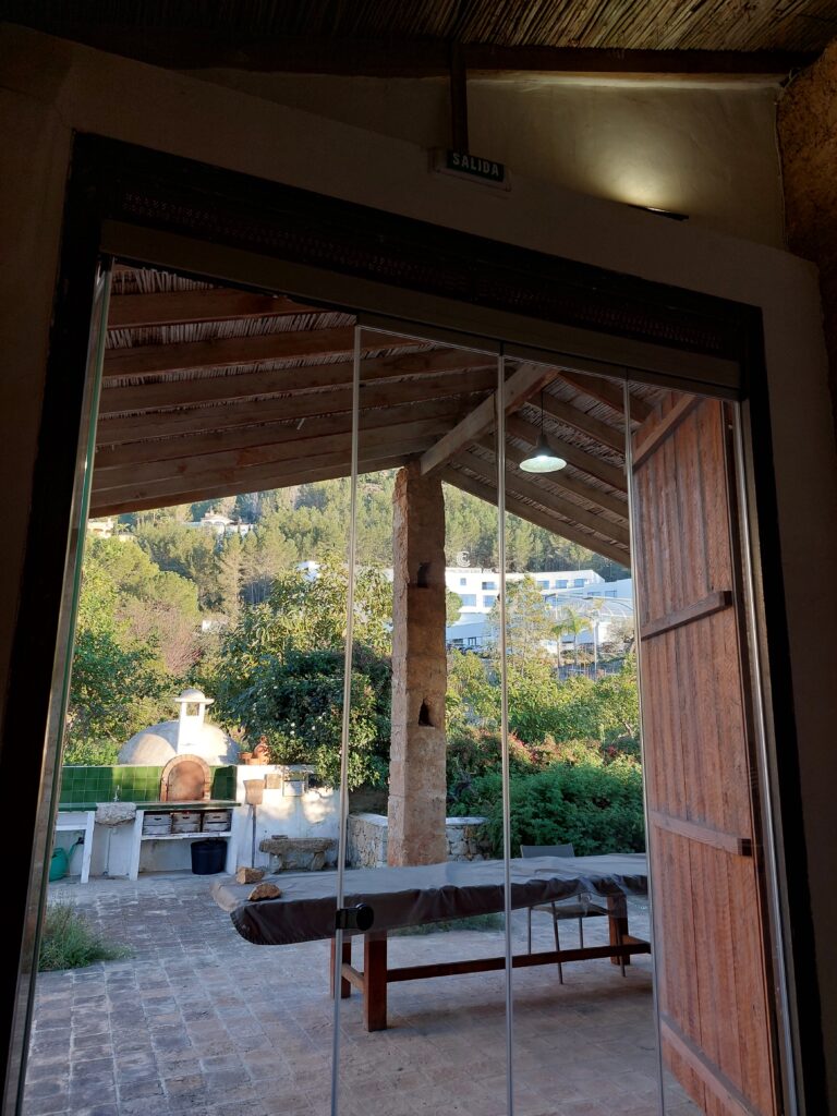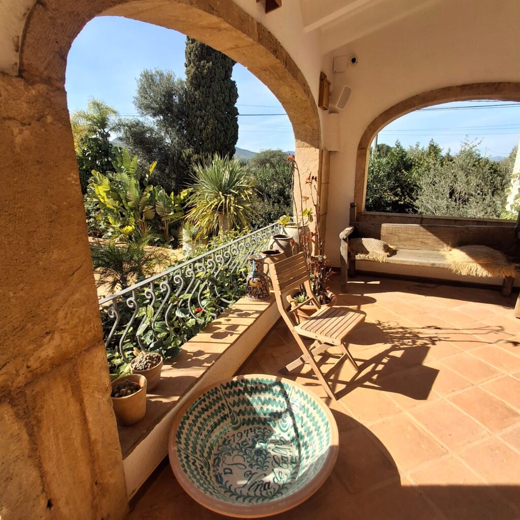 A pesar de que la imparable civilización va haciendo estragos en la zona, esta finca es un remanso de paz, rodeada de naturaleza, donde los detalles se han cuidado al extremo, como las piezas cerámicas que componen el suelo del porche, procedentes de la zona de la Albufera valenciana, tierra de los antepasados de Pascual. Piezas únicas que sus dueños han sabido conservar para que formen parte de este importante legado. En el interior de la casa destaca el relieve montañoso realizado en madera, en perfecta simbiosis con una de las mesas del conjunto, que no deja indiferente a nadie.