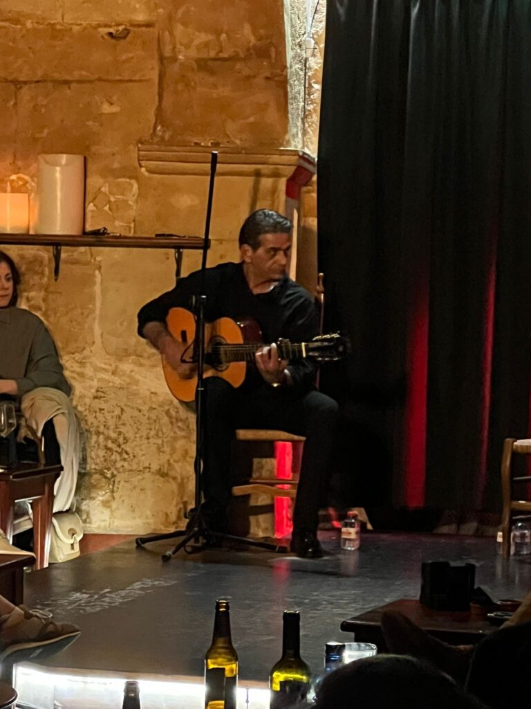 Estuve el pasado viernes, y la verdad que el espectáculo no carece de absolutamente nada. Es una función profesional por los cuatro costados, con bailaora, bailaores, cantaor, cantaores, cajón flamenco, y la extraordinaria guitarra de Félix Amador.