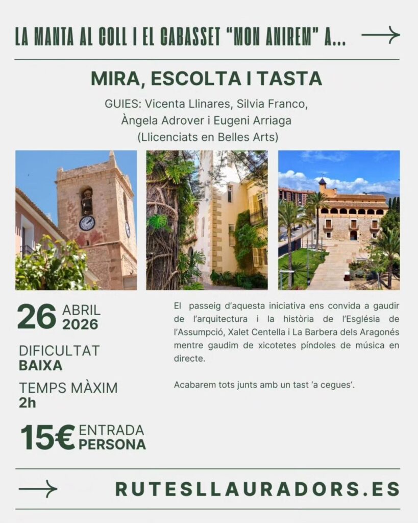 El éxito de las Rutes Llauradors demuestra que la cultura local puede —y debe— surgir desde la propia comunidad. Un proyecto con alma que invita al encuentro entre vecinos y visitantes; un modo distinto de vivir el patrimonio con los pies en la tierra… y el mar en las venas ¡Seguro que nos vemos en alguna! 😉