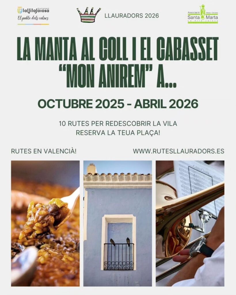 Os traemos la propuesta cultural de la Compañía Cristiana Llauradors, de La Vila Joiosa (Villajoyosa), que en 2026 ostentará el honor de ser la compañía del —o más bien, de la— Reina de los Cristianos, Marta Llinares, la reconocida voz de Onda Cero Marina Baixa. Una propuesta en forma de rutas socio-culturales con un alto valor simbólico y ejemplo de iniciativa sostenible. Unas rutas que acercan a locales y visitantes al patrimonio natural, histórico y artístico de La Vila. Una iniciativa que une fiesta, territorio e identidad bajo una misma mirada: la del amor por su pueblo.