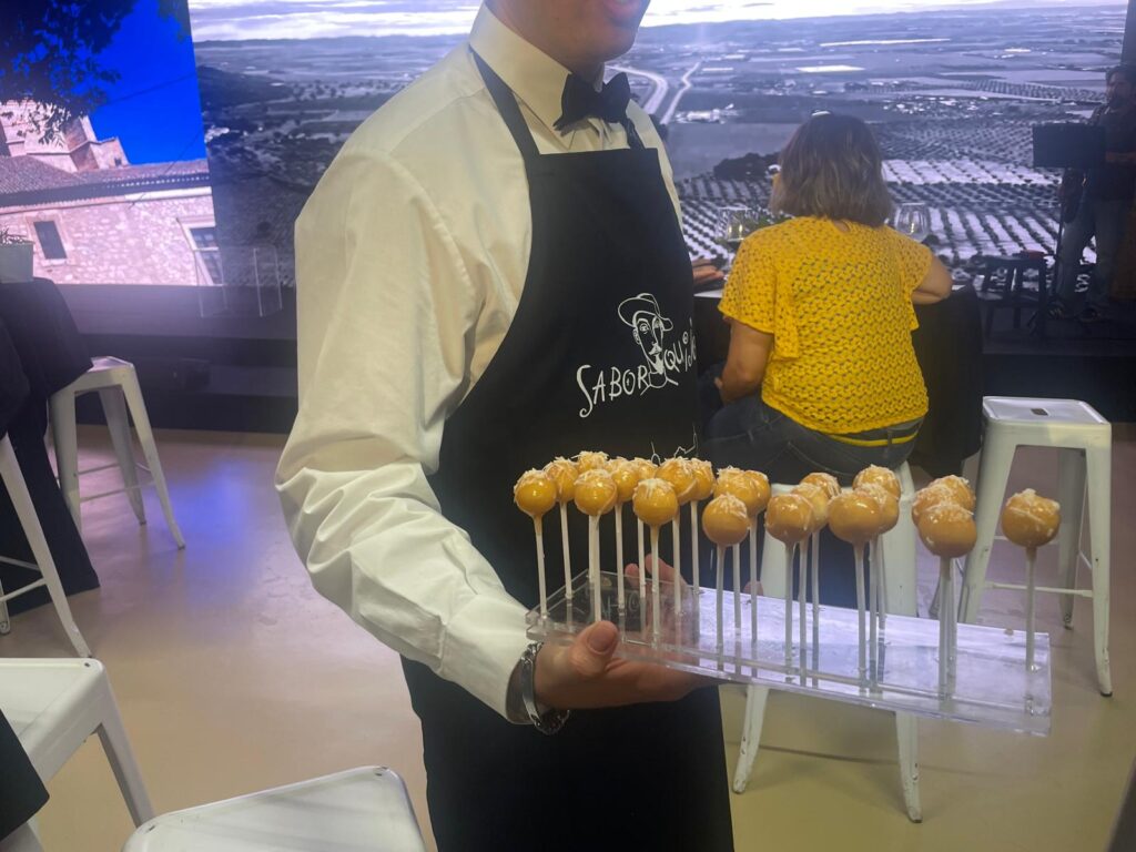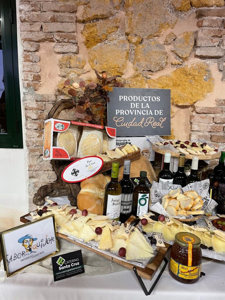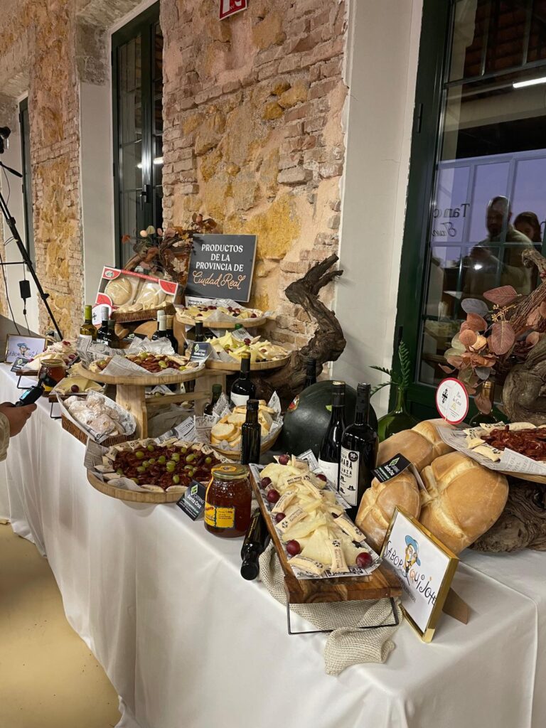 La fiesta se desarrolló con una cena con un menú degustación elaborado con todos los productos de la tierra. “Comenzamos a comer con grandísimo gusto, saboreando cada bocado”. El queso manchego era uno de los grandes protagonistas. Probamos ensalada de codorniz, lomo de orza, tartaletas de tiznao, de pisto de asadillo de pimientos; cazuelas de migas del pastor y de sopa de ajo… Las piruletas de queso manchego con membrillo se derretían en la boca. Yo me acordé de Sancho Panza: lo que habría disfrutado con tantos ricos manjares. Los vinos, con su propia Denominación de Origen, con la famosa uva blanca Airén Y, como en la obra, todos los asistentes salimos con una bonita “alforja”: una bolsa con