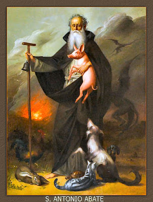 17 de enero, «Sant Antoni del porquet», Patrón de los animales. Y el fin de semana, en torno a esta fecha, en muchas poblaciones de la Provincia de Alicante y de la Comunitat Valenciana se celebran las Fiestas de «Sant Antoni», San Antón o San Antonio Abad.