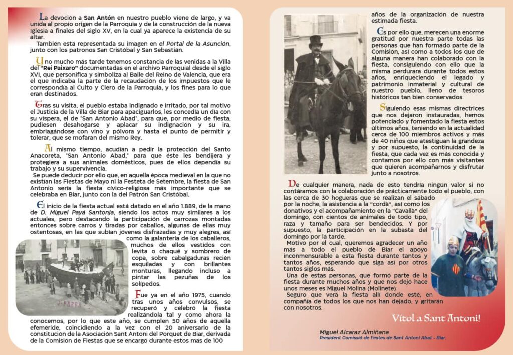 Historia del «Rei Pàixaro«, escrito de Miguel Alcaraz Almiñana, Presidente de la «Comissió Festes de Sant Antoni Abat» de Biar.